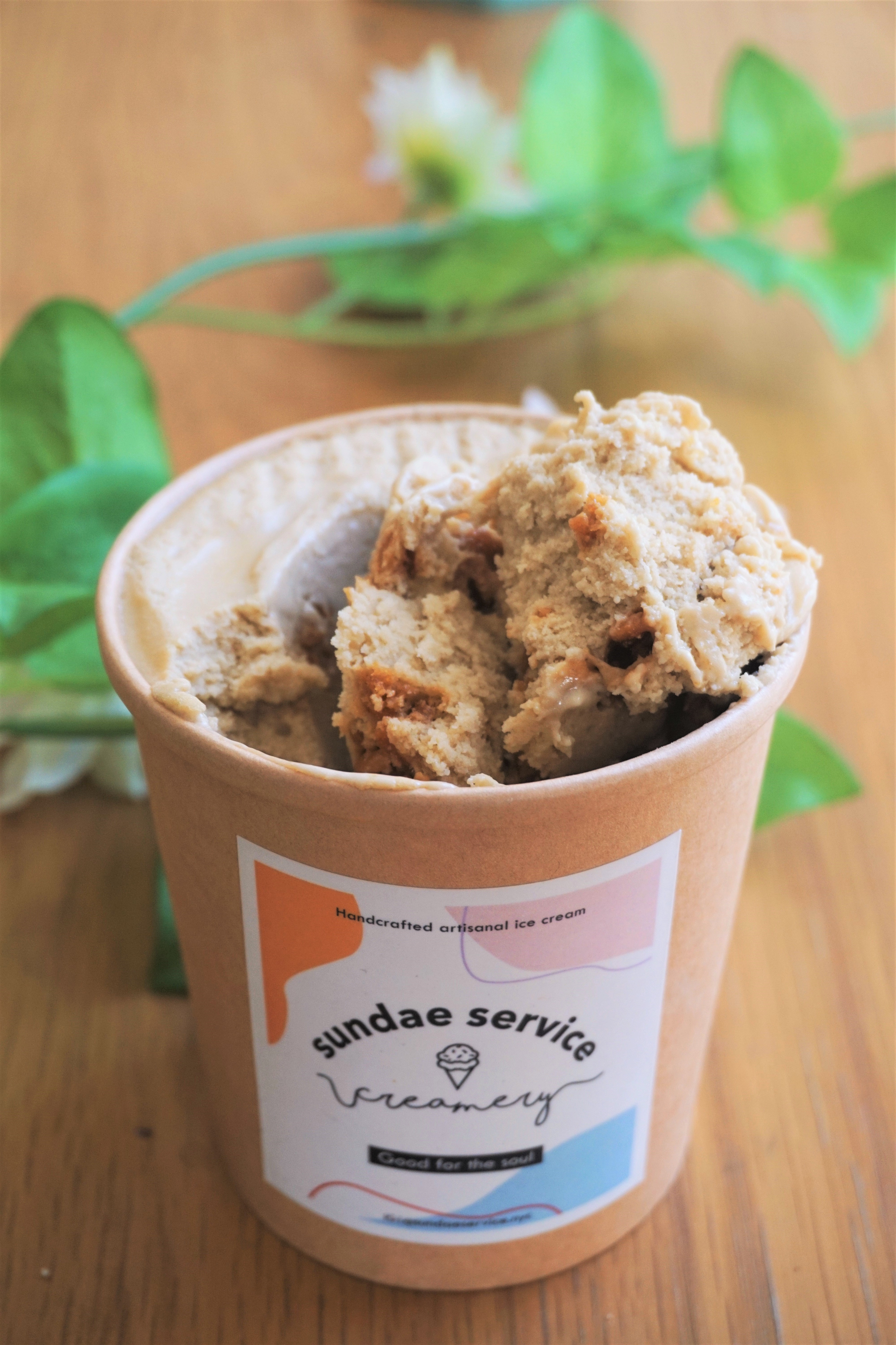 The “Jasmine Tea with Roasted Rice Clusters” ($10.99) was our favourite of the three pints of ice cream that we ordered from Sundae Service. The ice cream base was jasmine tea flavoured, made in collaboration with another minority small business, Us Two Tea. It was embedded with roasted rice clusters for textural contrast.