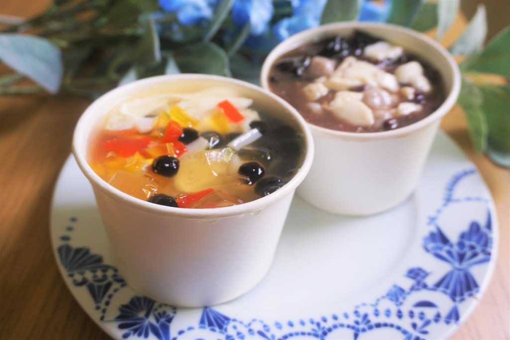 Available as straight-up tofu, or combined with toppings, such as taro balls, grass jelly, red bean, bubble tea pearls, ai-yu jelly etc |