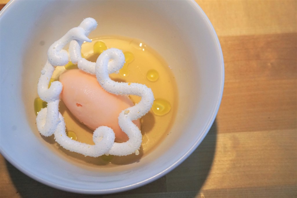 Short and sweet story: A new entrant to NYC’s Michelin star listings, Vestry was one of the first proper restaurants we visited this summer. Its modern Japanese-accented fare is ideal summer season food, light but flavourful. The energetic creativity in the savoury offerings is also found in the dessert menu, of which there are just two options. Playing on the trompe-loeil dessert trend, the “Cheesecake” ($15) cleverly resembles a triangular of cheese, with a mouse made of apple puree sniffling at its edge. Similarly, the “Navel Orange” ($15) is an explosive burst of citrus tang, erring towards grapefruit-like tones.