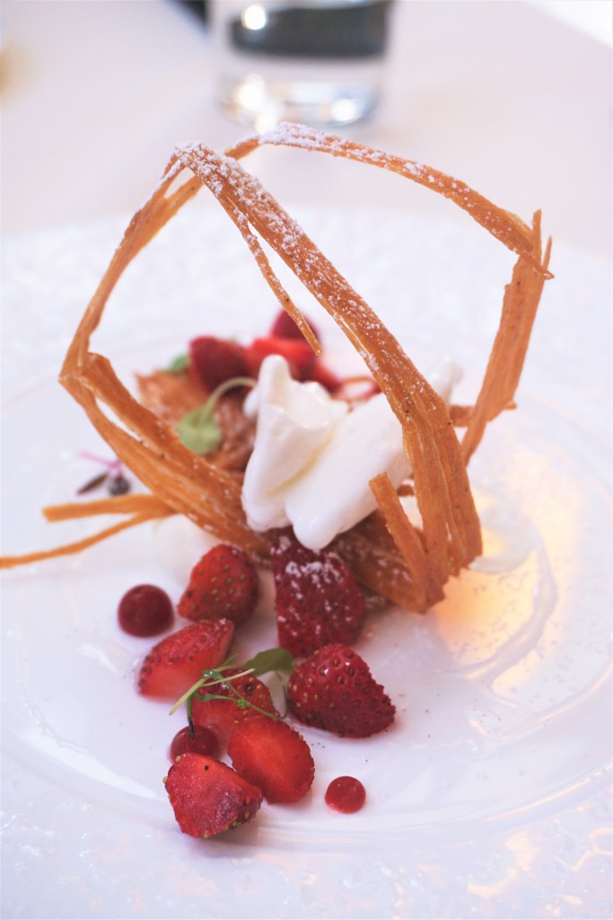Short and sweet story: Our second favourite park in NYC, after Central Park, is Bryant Park. Adjacent to the stunning New York Public Library, we always stop by to rest our feet after a day of shopping along 5th Avenue. During the winter months, it becomes the site of our favourite NYC Christmas Market. Diametrically across from Bryant Park, at one side you have the first Lady M patisserie we ever visited, and at the other, what used to be the fanciest chocolatier in the city (now sadly shuttered) and its parent 2-Michelin-starred restaurant. That restaurant is Gabriel Kreuther, and it is all sumptuous luxury. It’s stunning inside and out. Shielded from the traffic and with pendant light drops, its white table-clothed outdoor dining area exudes a similar level of refined sophistication and quiet ambience as the indoor dining area. Desserts are a highlight. The mainstay of the dessert menu is the silky “Chocolate Caramel Flan” ($22), surrounded by a moat of cocoa nib feuilletine and accessorized with a quenelle of milk sorbet. Look out for the return of the seasonal “Strawberry Mille Feuille” ($22) in a deconstructed style, sculptural twigs orbiting a nest of yuzu sorbet and strawberries.