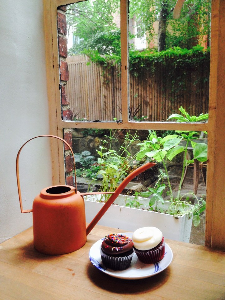 Short and sweet story: Arguably the most charming cupcake secret in NYC may be found at Urban Backyard, a terrarium-like coffee shop wedged into the hustle and bustle of Nolita. The cupcakes are tiny and expensive, but how can you resist such an artistically-wrought miniature?