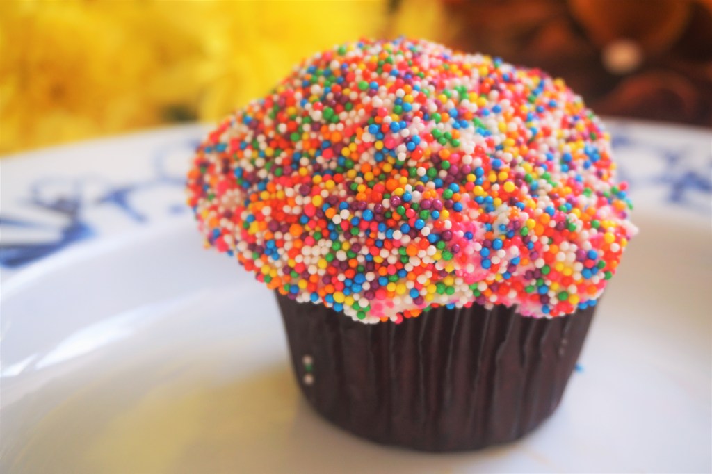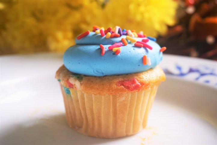 Short and sweet story: You may recall Sprinkles as the inventor of the muffin top icecream (see here for our previous review). Well, if you don’t want a cupcake stuffed on top of an ice cream cone, and you just want the cupcake itself, Sprinkles’ cupcakes possess the most delectable buttercream icing in the city. And when visiting Sprinkles, we recommend that you order its namesake. 😛