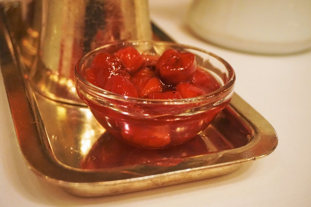 Resplendently decorated in fiery reds, deep greens and lustrous golds (including that 24-carat gold ceiling), the Russian Tea Room is a place that calls for an extravagant outfit. Founded in 1927 by the Russian Imperial Ballet group, one can almost picture clandestine meetings gathered around the generous banquette seating in the years bygone as much as bejwelled ladies congregating for afternoon tea. As to the latter, afternoon tea at the Russian Tea Room is available daily, from 11.30am – 4.30pm, for USD $80 pp (plus tax/tip). It is served by wait staff who are immaculately dressed, attentive and discreet in the old-fashioned way. The tea selection is sparse, featuring just six types of teas (English breakfast, Darjeeling, chamomile, oolong, mint and rooibos). The tea is somewhat watered down, and is accompanied with honeyed cherries, in the Russian style.