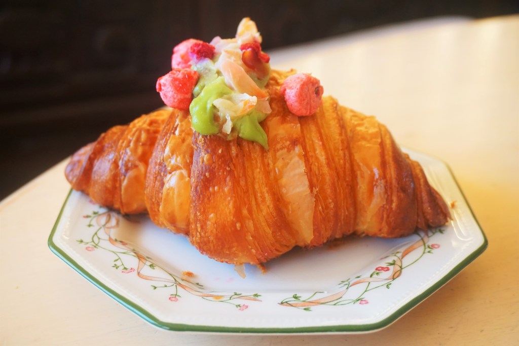 Short and sweet story: The youngest dessert boutique of the ones in this round-up review, Sucre du Jour is a love letter to cakes. Make sure to keep an eye out for our full review of their cakes soon, but in the meantime, let us know tell you about their croissants. Specifically, the salty meaty “Candied Pork Jerky and Pork Floss” croissant, as well as the pretty as a spring day, “Ispandan” croissant swirled with pandan cream, strawberry lychee and embedded with raspberry meringue and lychee. Ooh la la!