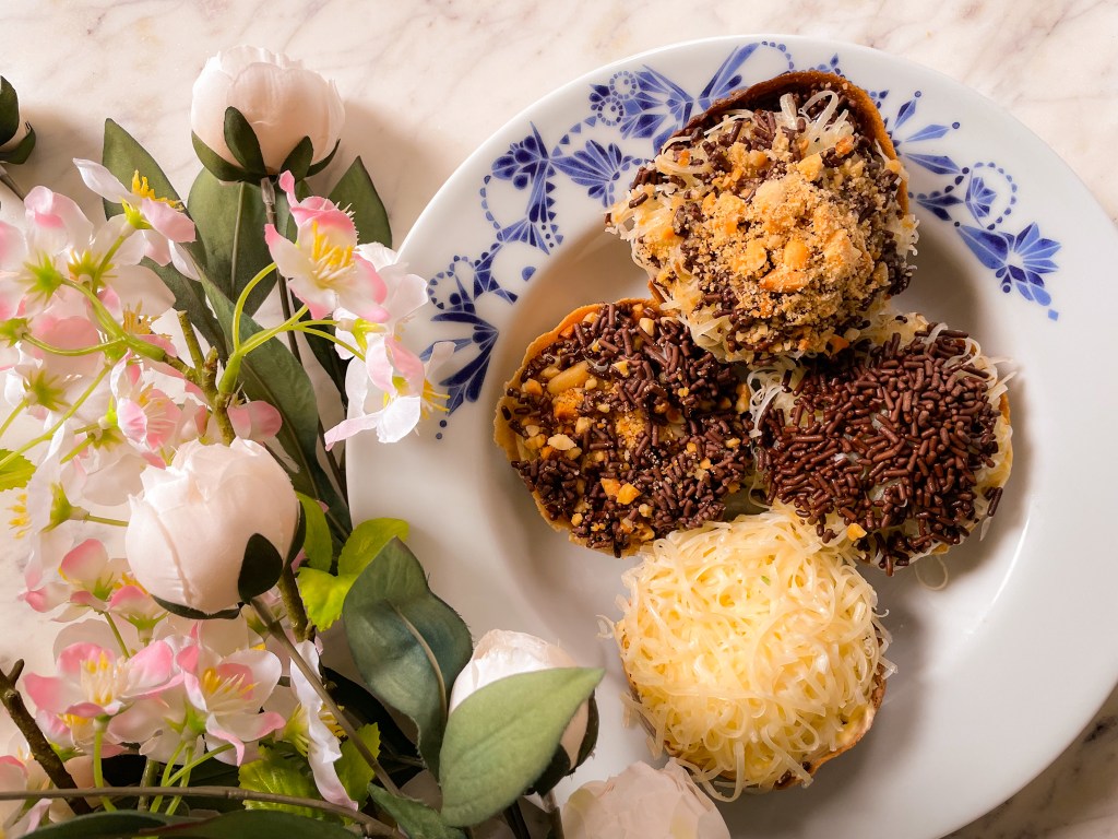 Papa Don in Astoria specializes in the Indonesian version of the apom, where in Indonesia, it is instead known as murtabak or terang bulan. Quite different from the simple peanuts and sugar topping of the Malaysian apom, Papa Don covered its murtabak with a confetti storm of chocolate sprinkles, roasted peanuts and cheddar cheese. Upon slight re-heating, the pancake itself was very soft and chewy, and certainly evoked memories of our childhood holidays in Malaysia. Do take especial note that Papa Don’s murtabaks are available for pre-orders only, not for walk-ins. The sampler set of 4 murtabaks as pictured below was priced at US$ 16, but you can also customize your own murtabaks with different pancake bases (e.g. ube, red velvet, pandan etc) and an array of different toppings (e.g. oreos, nutella etc).