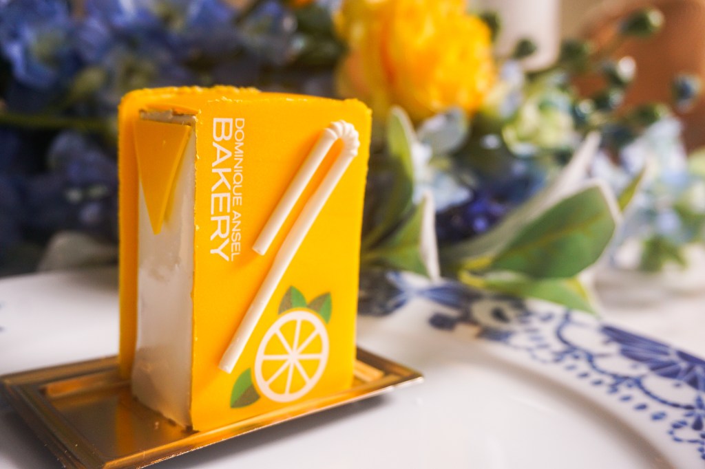 Almost three years ago — August 2019 — at the height of the trompe l’oeil dessert trend, our favourite NYC patisserie introduced a series of desserts to represent everything iconic about life in NYC. There was a cake that looked like a bagel, another like a pepperoni pizza slice, a pretzel and lastly, a hot dog. :O See here for the dessert masterpieces. Fast forward three years, and to celebrate the re-emergence of global travel after this l-o-n-g pandemic, Dominique Ansel has released a new edition of trompe l’oeil desserts, this time celebrating desserts beyond NYC and from around the world. And as soon as we came back from a trip abroad, we made a quick beeline to DA and ordered the whole series. 😀 Yes, we know, need to go check pancreatic function after this, but we just couldn’t resist! So without further ado, feast your eyes on the following photos and run over to DA as these special cakes ($9.50+ tax) are only available until 21 July! Wouldn’t they make for a fabulous summer picnic idea? 😛