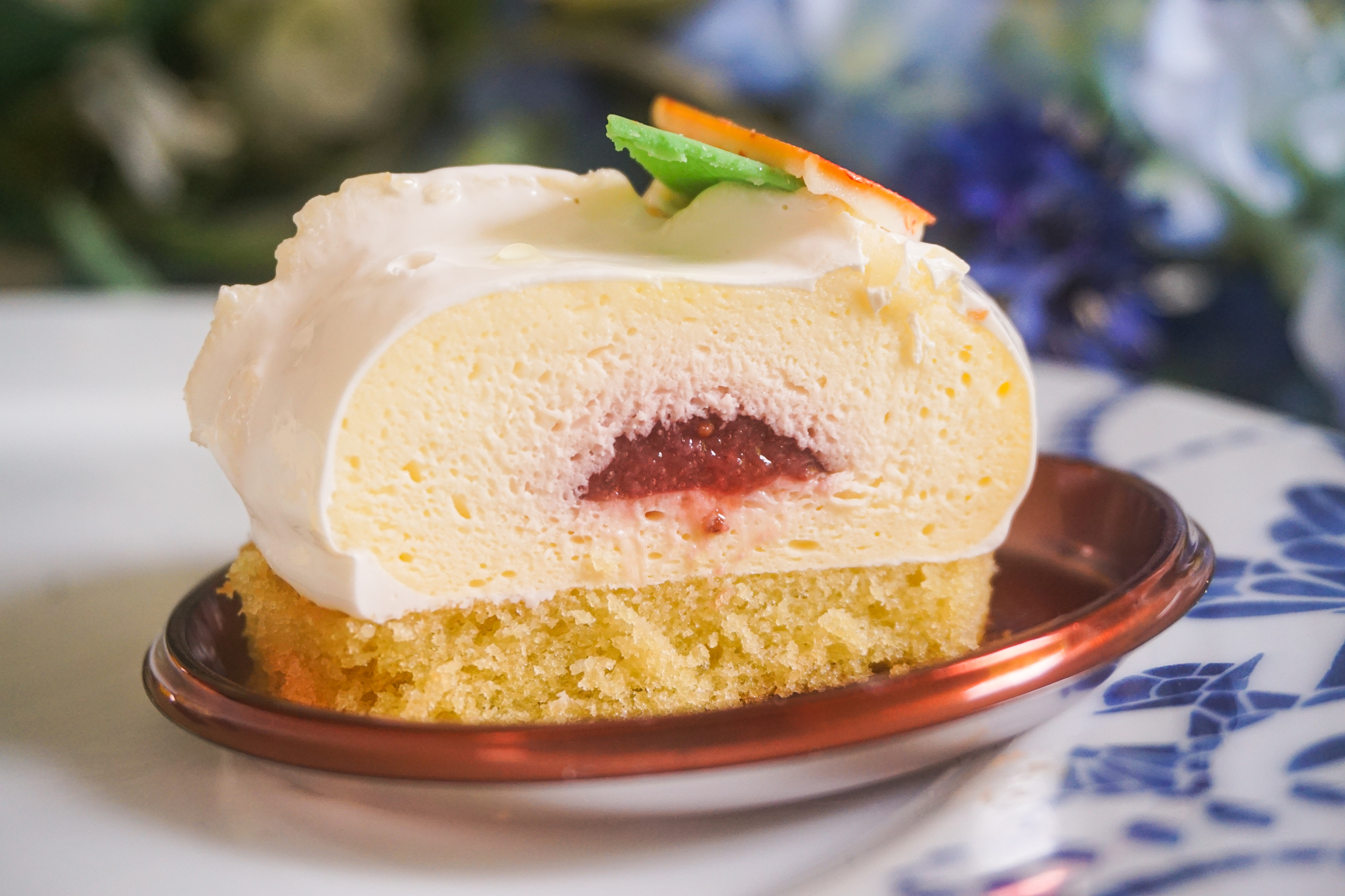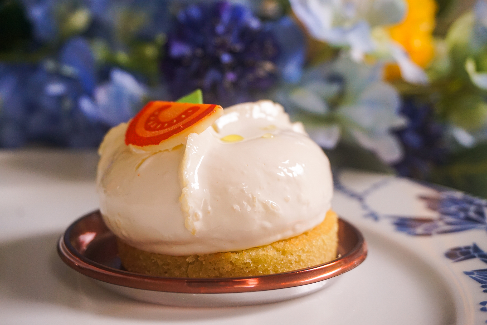 - “Italian Burrata” — a large globe of mascarpone mouse was infused with fresh basil and strawberry compote, and perched on an olive oil cake base. There was something rather addictive between the balance of sweet and salty here, and it was our second favourite of the global dessert series.