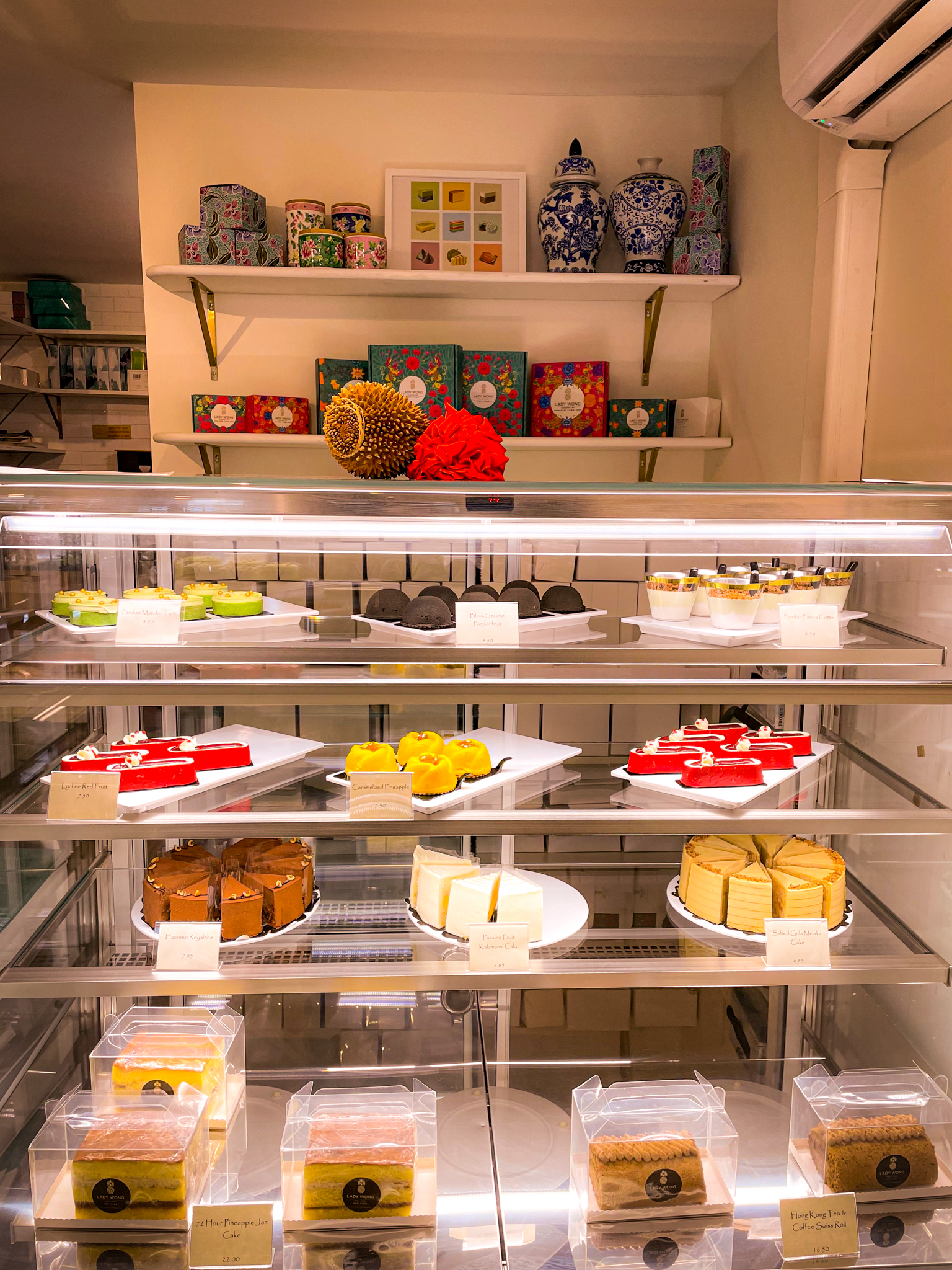 Aside from traditional kuih, Lady Wong also offers French patisserie-style cakes (USD $8-9 each), albeit infused with the flavours of South-East Asia.  Of the assortment on offer, we have sampled the following: