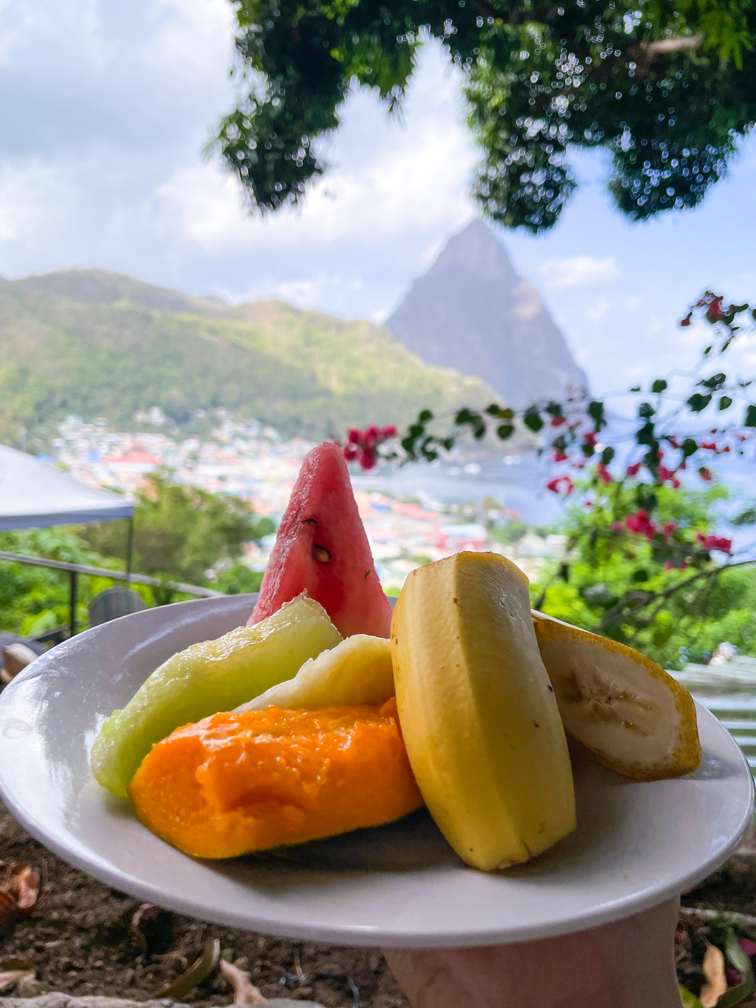 There is no better way to start one’s day in St Lucia than with a rainbow-hued platter of the freshest tropical fruit… and a lot of banana cake. 😛 Banana is one of the country’s top exports, and it is found not only in sweet dishes, but also as part of national delicacies such as salted cod and green figs (aka green bananas). Gobble as much banana cake as you can as you will need it for a long day of daytripping.