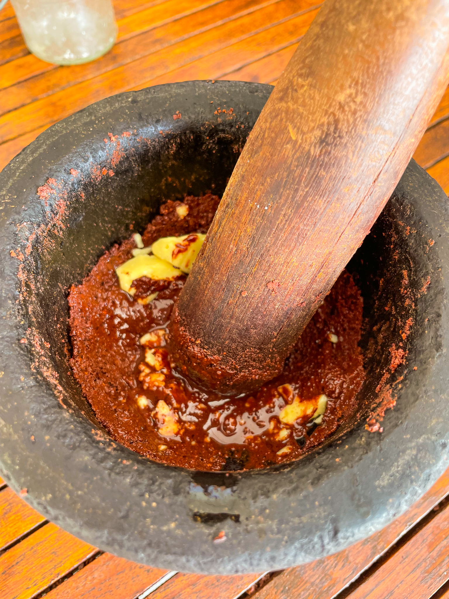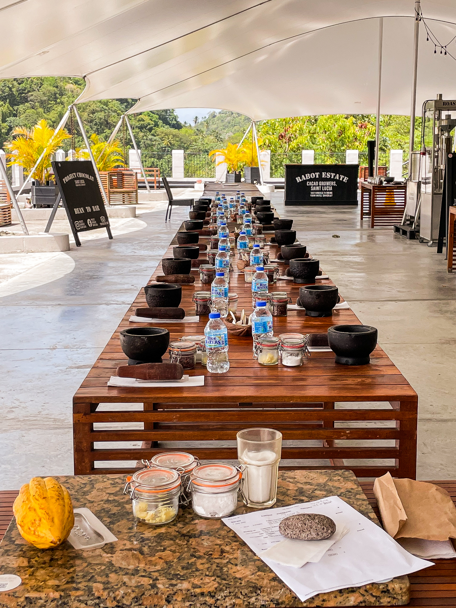 When your Dessert Correspondents learned that St Lucia is the home to a cocoa plantation (aka chocolate heaven), we knew that this was the Caribbean island for us. 😛 On our third day in St Lucia, we started the morning by grafting a cocoa plant, learning about the harvesting process of cocoa pods, and touring the lush plantation owned by British chocolatier brand, Hotel Chocolat. The highlight of the morning was making chocolate by arduously grinding cocoa nibs with a stone mortar and pestle, sifting sugar and stirring cocoa butter into the thick paste, and allowing it to set in a small plastic mould to take home later. The tour cost almost USD $120pp, and came with lunch with an American slant — e.g., a choice of fish and chips, burgers, or wings with a side of mash, plantain chips or salad, and an epilogue of slightly bitter, cocoa soft serve ice cream.