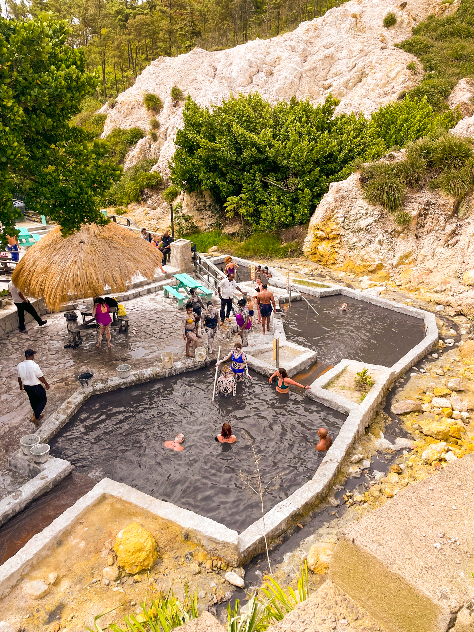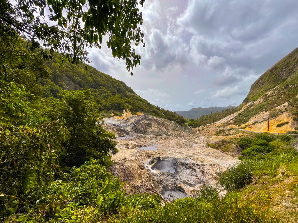 - Blocking our noses from the sulphur-tinged air while gazing at the pools of bubbling volanic mud at St Lucia’s drive-in volcanic (USD $10pp, plus mandatory guide);