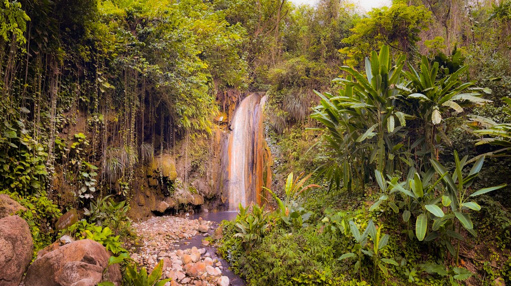 - Enjoying the rare occasion of having the Diamond Waterfall Botanical Gardens all to ourselves, whilst glimpsing luminous hummingbirds fluttering between bromeliads and watching the waterfall cascade over colourful striated geological forms (USD $10pp); and