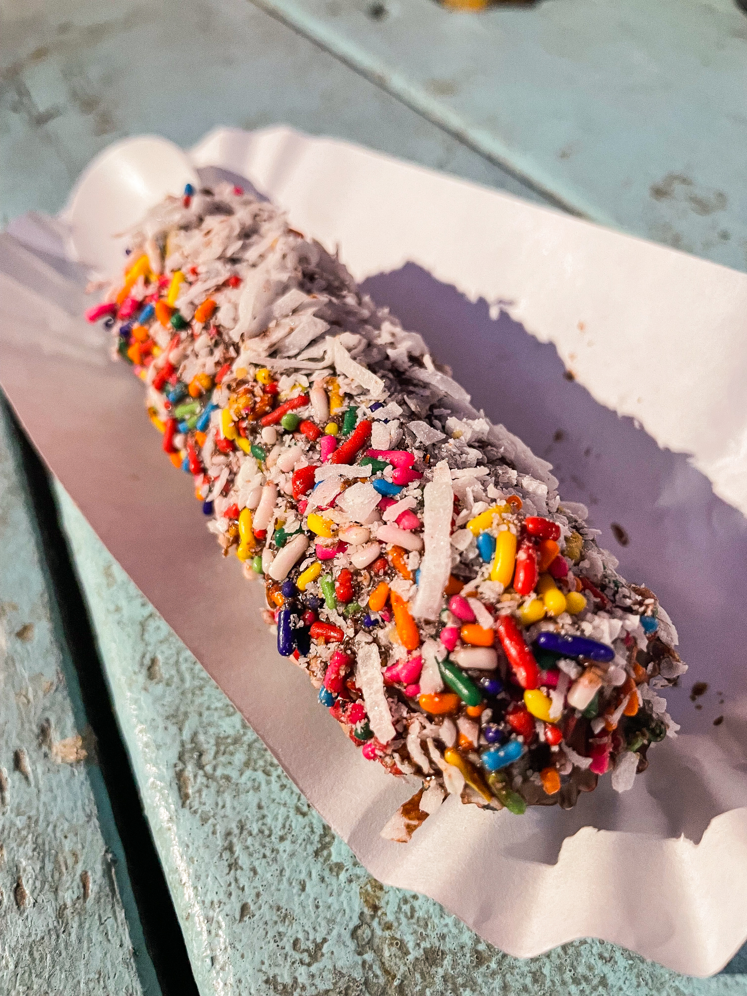 Of all the food trucks in the South Congress area, we recommend two for their desserts treats. If Montana is all about huckleberry desserts, San Francisco is the home of artisan chocolate, and New Orleans sings a song of pralines and beignets, we will remember Austin most for its frozen banana food truck. In a semi-frozen state, the banana flavour was subdued rather than pungent, and coated in chocolate, coconut flakes, sprinkles, nuts and other toppings as you like. It made for a wonderful post-dinner dessert. We recommend ordering the half-serve, rather than the full banana.