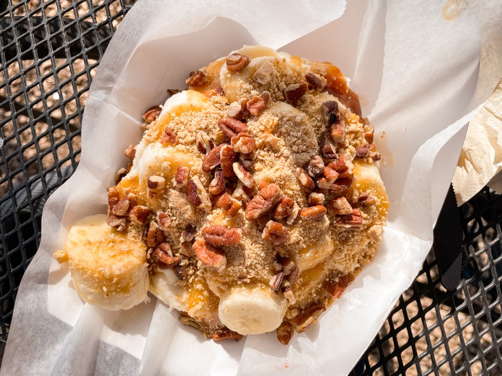 For your second food truck dessert treat, make sure to hit up Gourdough. It is a striking silver food truck that serves doughnuts from early morning to midnight. The doughnuts are….entirely something we have never seen before. They are the biggest, most decadent doughnuts we have encountered. Bring a friend…or four, with you! We ordered the “Granny’s Pie,” a doughnut covered in an avalanche of caramel sauce, bananas, graham crackers and pecans. Three bites and we couldn’t eat anymore, we were filled to the brim and ready to roll onto the plane back to NYC with a lot more dough belly than what we had when we first arrived in Austin. π