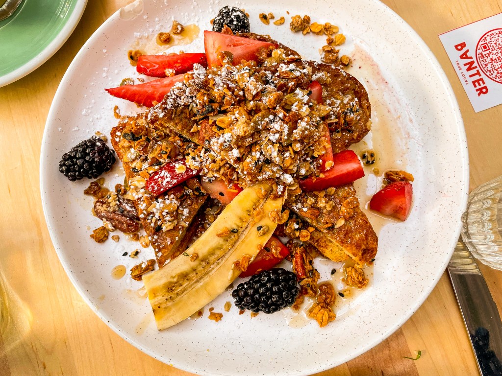 Short and sweet story: Nutella French Toast ($17 + tip/tax). We have been meaning to visit the Australian-accented Banter in forever, and when we finally visited this summer, we were in for a treat. Its French toast — oozing with nutella and showered in crunchy granola — is just…delicious.