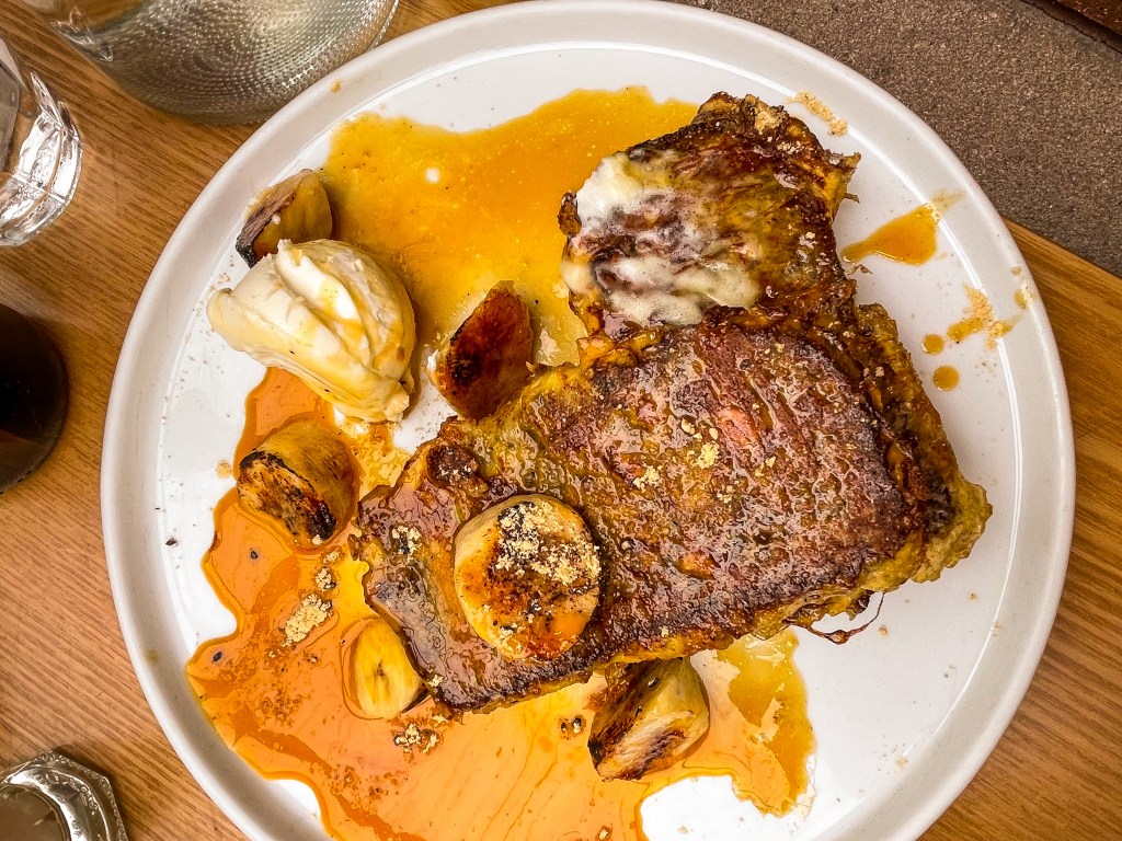 Short and sweet story: Stuffed French Toast ($22 + tip/tax). Bedecked in jewel tones and rich warm woods, Bar Tulix is one of the most glamourous places to dine in Soho. Its Mexican-accented food has all the joyful energy of the cuisine, and its French Toast — sandwiching plaintains and lashed with mango puree — makes for a perfect wake-me-up during brunch hour.