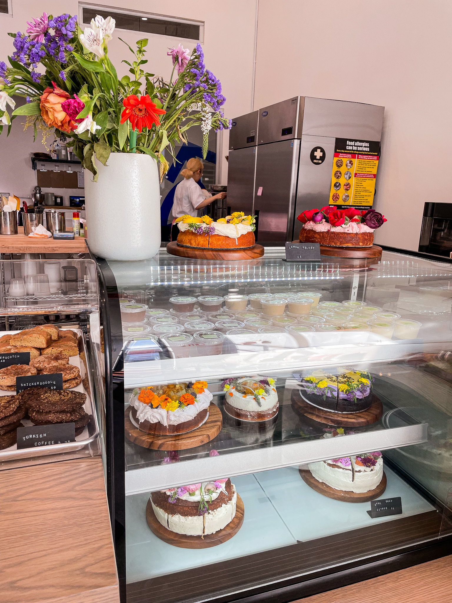 Short and sweet story: Located on a desolate windswept avenue in Gowanus, By Clio lures you in with its cherry bright pink signage. Once inside, it steals your attention with a glass counter filled to the brim with cakes that look like they have come out of the pages of a fairy book. By contrast to From Lucie’s flower cakes, Clio’s cakes have a more dense texture, more liberal swirls of icing, and more creative lavours. Our favourite of Clio’s cakes is the “Lemon Velvet,” a heavyweight cake with an energetic tang. Subtler flavours may be found in the “Orange Sage Olive Oil” cake, the “Persian Love Cake” with its waves of matcha frosting and slight rose tones, and the sweeter “Earl Grey” cake layered with pomelo curd and sandwiching pieces of grapefruit. The most curious of Clio’s cakes is the “Braised Daikon” cake — with a complex interplay of savoury daikon, earthy sesame and sweet caramel flavours, it’s quite remarkable.