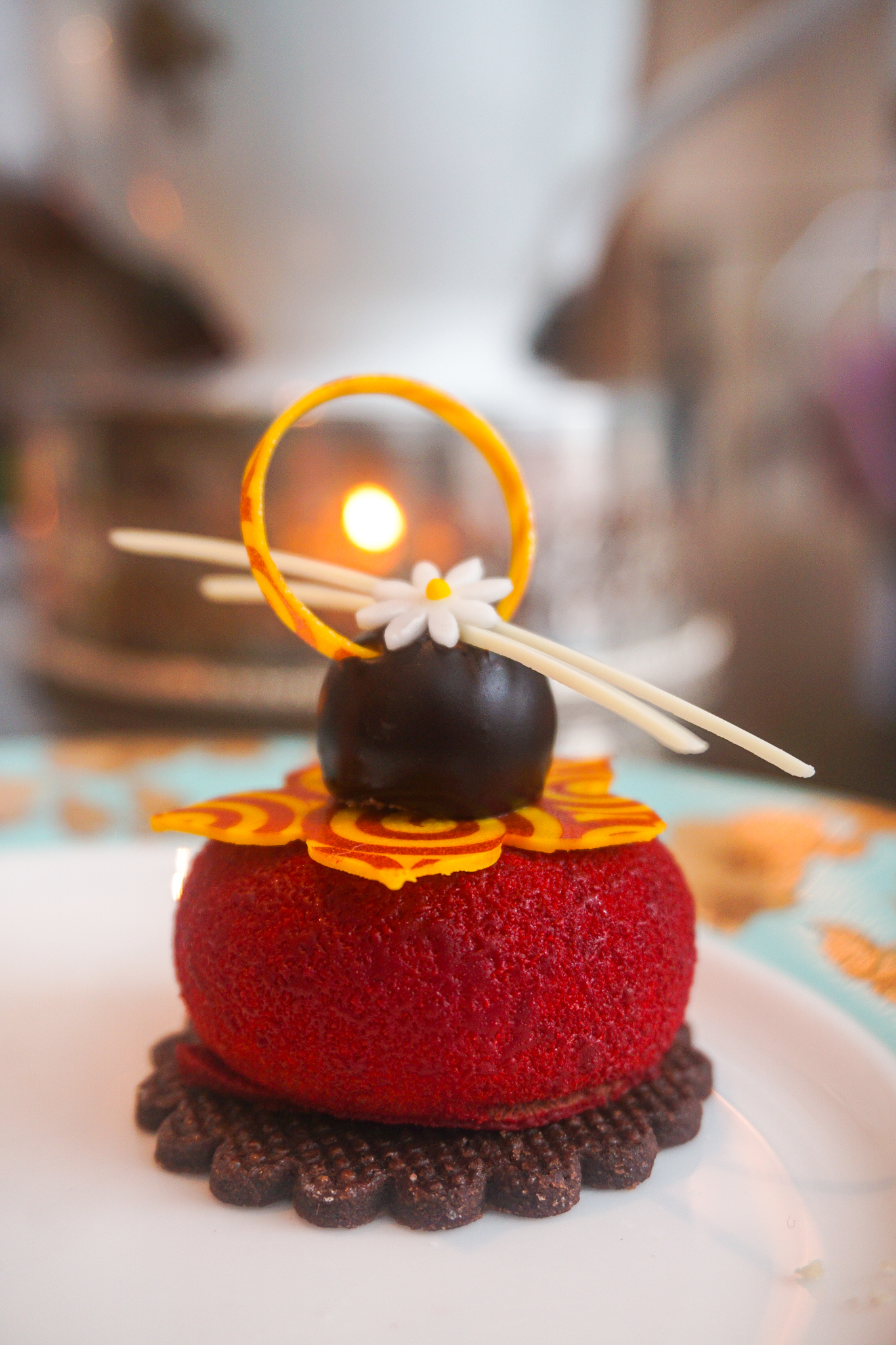 Long-time followers will know that these Dessert Correspondents seek out afternoon tea venues that put more effort into their dessert creations. Well, we were very, rather pleased with such creations at the Pan Pacific. The dessert portion of the afternoon tea consisted of a trompe l’oeil orange, a log of lychee mousse and red date, a more dense chocolate creation, and another infused with all our favourite dessert flavours (passionfruit, lime, mango and coconut). They were just exquisite.