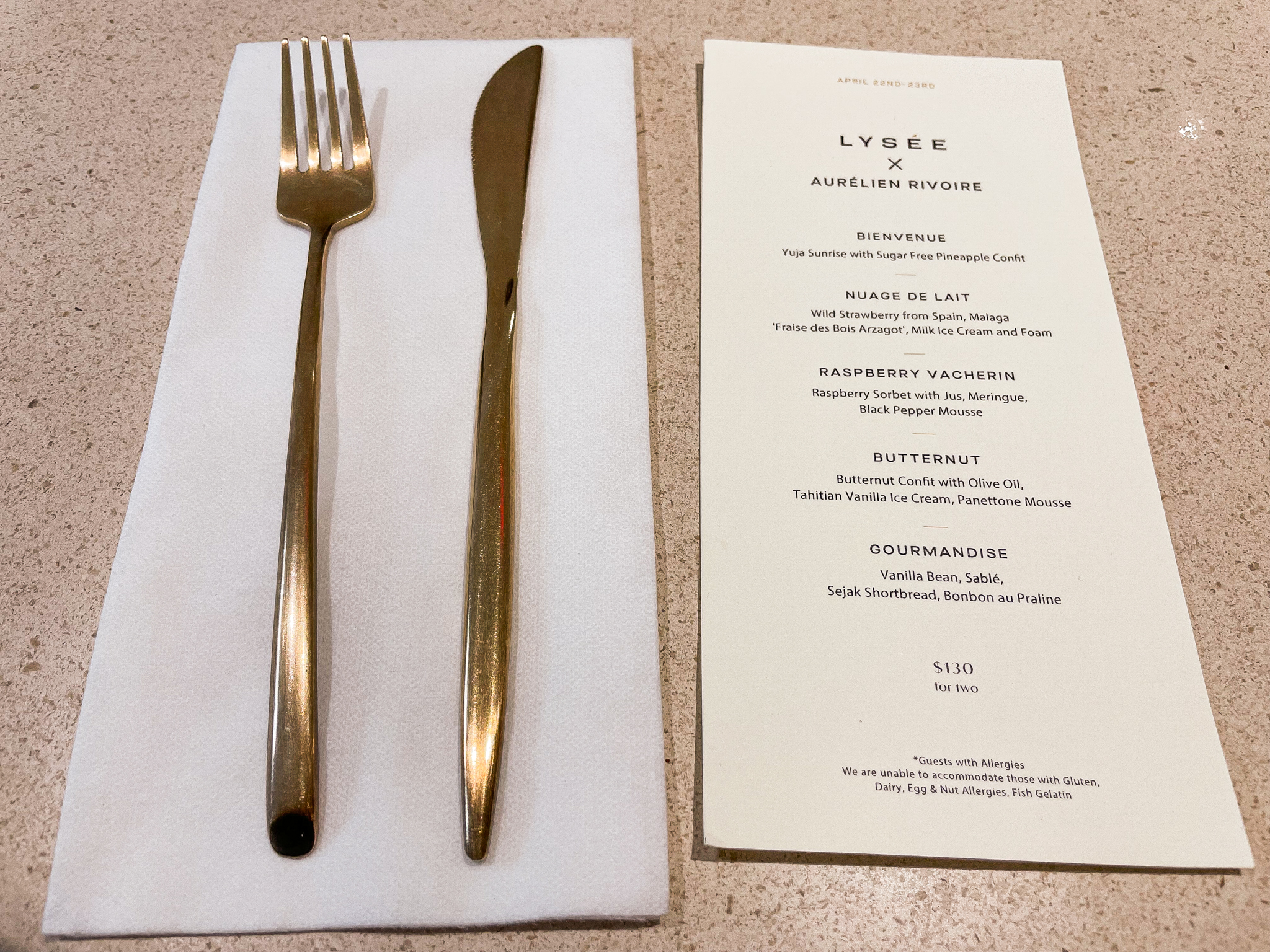 When Lysée first opened last summer of 2022, our first impressions were disappointing. See here for our past review. By contrast, the recent dessert degustation collaboration was a well-executed, beautifully-crafted experience. We hope that Lysée will bring back the dessert degustation concept to NYC by offering similar dessert tasting experiences in the future!