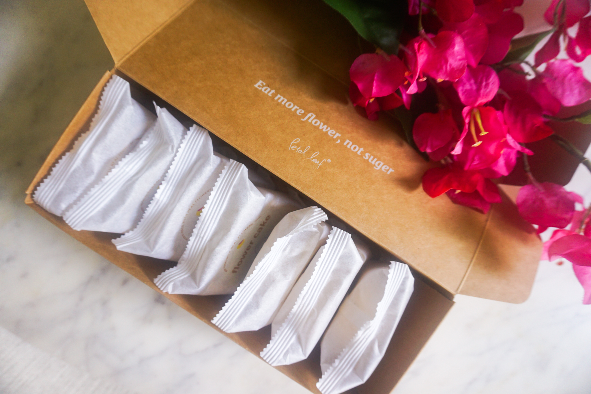 Petal Leaf’s flower cakes are individually-wrapped, and upon opening, exude a most fragrant twirl of roses. Filled with crushed edible rose petals, each possess just a whisper of sweetness. The flaky outer shell of each cake come infused with a few colours and flavours — with matcha, charcoal, and yam being the more colourful — but these purported flavours are somewhat muted or imperceptible against the strong rose flavours. Of the flower cakes in our box, we particularly loved the contrasting texture from the pine nuts, and the more subtle jasmine and chrysanthemum flower cakes over the rose cakes. They all pair beautifully with tea.