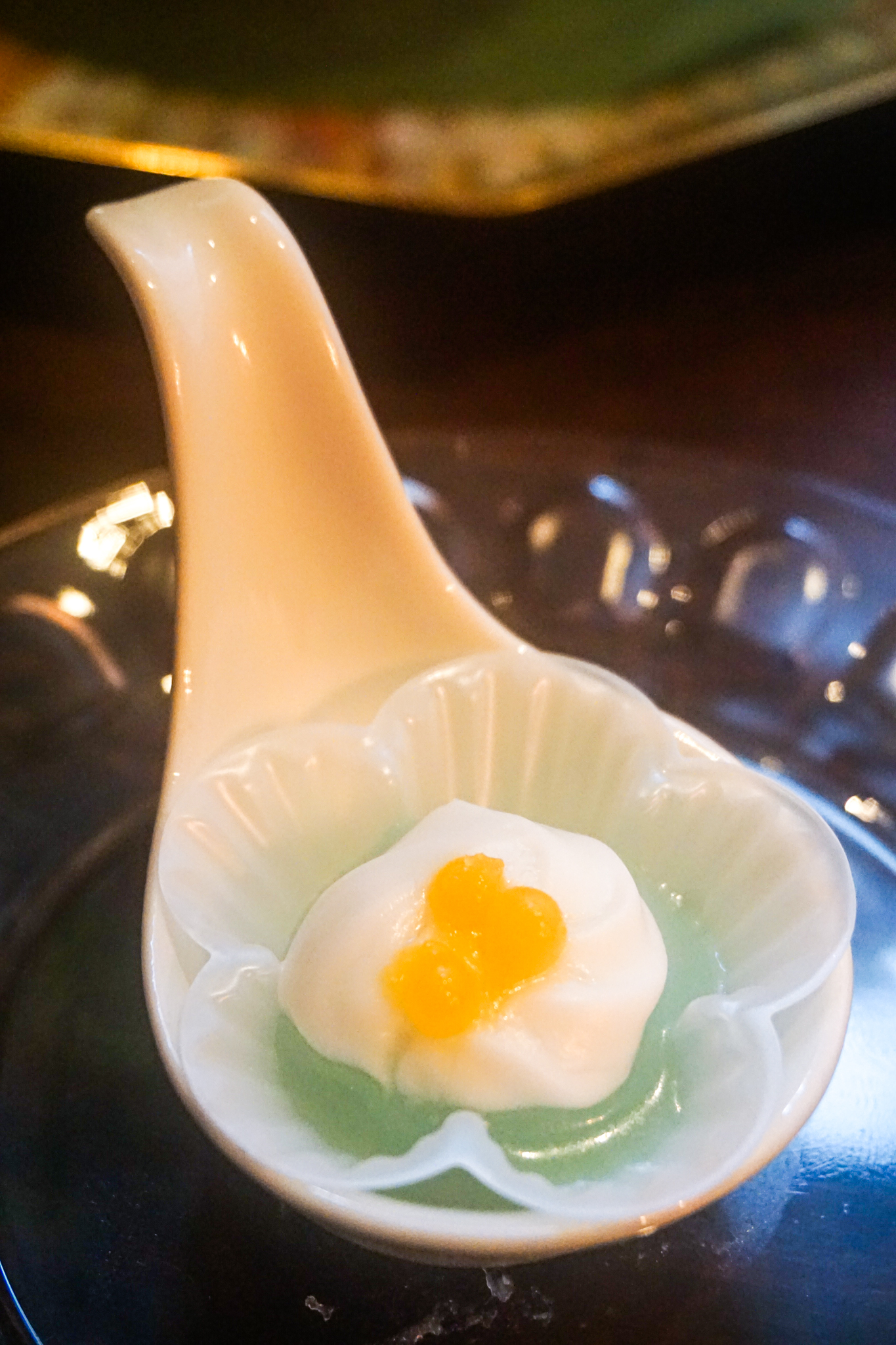 Sarisa’s afternoon tea desserts were beautifully handcrafted and hued in a rainbow of colours. Presented on a striking brass tower, they resembled a cascading bouquet of flower cakes. On our visit, there were spoonfuls of coconut milk jelly and custard shaped into flowers, cushions of sticky rice, rosebud cakes of steamed tapioca, and an assortment of mung bean-filled mochi bites variously shaped as mini vegetables and tubular minion-like logs. We recommend eating beforehand as all of the morsels were desserts; there were no savoury components to Sarisa’s high tea. Taste-wise, the dessert bites were all largely mung bean or coconut-based, so about halfway through, our tastebuds started to become a little blurry. That said, Sarisa’s afternoon tea left us filled but light, quite unlike the lingering sugar coma that characterize the aftermath of most other high teas.
