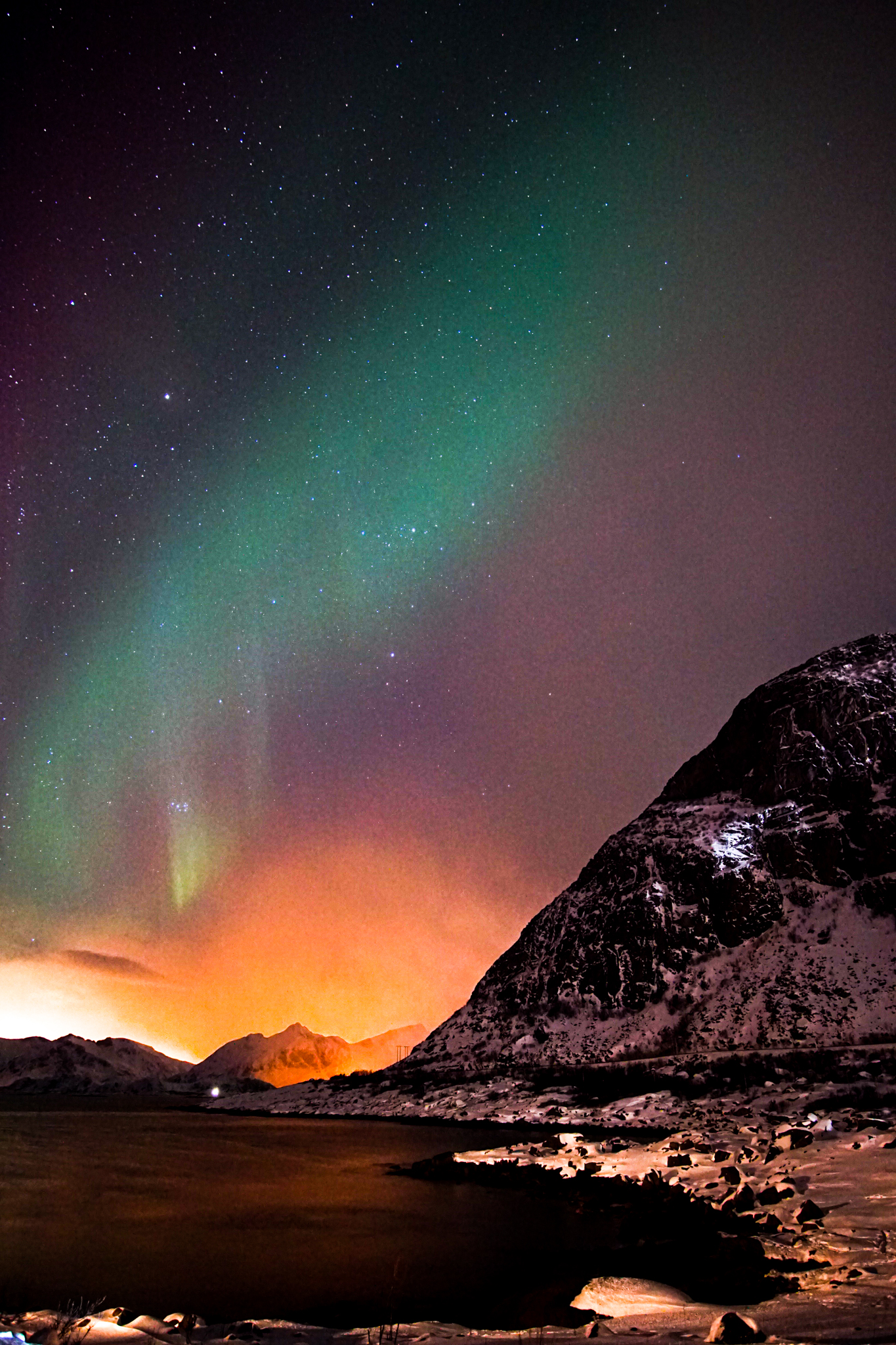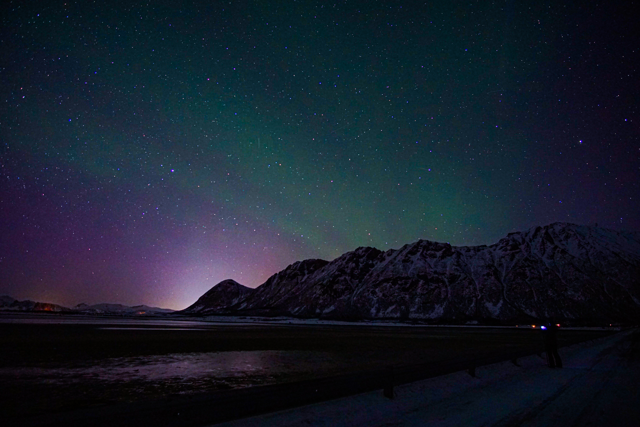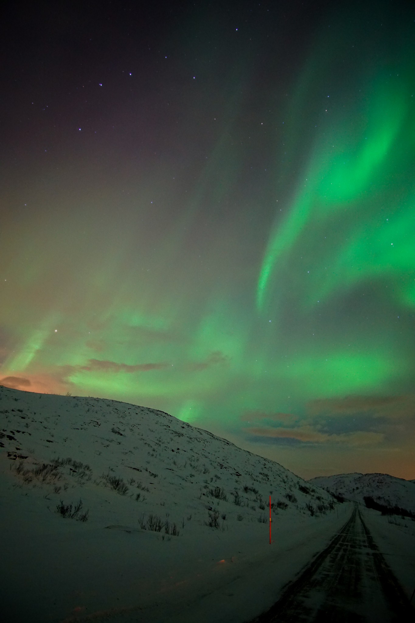 In writing this post on the best things to do in winter in Norway, you might have expected that we would list the Northern Lights as “number one.” That was, after all, the main reason for which we visited Norway. But it actually became our biggest disappointment. Chasing the Northern Lights was, for us, as underwhelming as seeing the Mona Lisa or Niagara Falls. You would be hard pressed to lure us back again for it. There are many variables involved to find these elusive lights. You will need absolutely dark skies, clear from clouds and rain, and you will need the magnetic field to line up in a way such that the lights might appear. We had all of these factors on each evening we went out, and yet, we only saw a glimmer each time. To be precise, a glimmer of pale grey to the naked eye, almost like a wavy cloud or mist. The colours you see below, by contrast, are what the camera saw, and not just any camera…a camera sitting on a tripod for several minutes, with a USD $1000+lens attached to it, and an increasingly irate person behind it. 😛