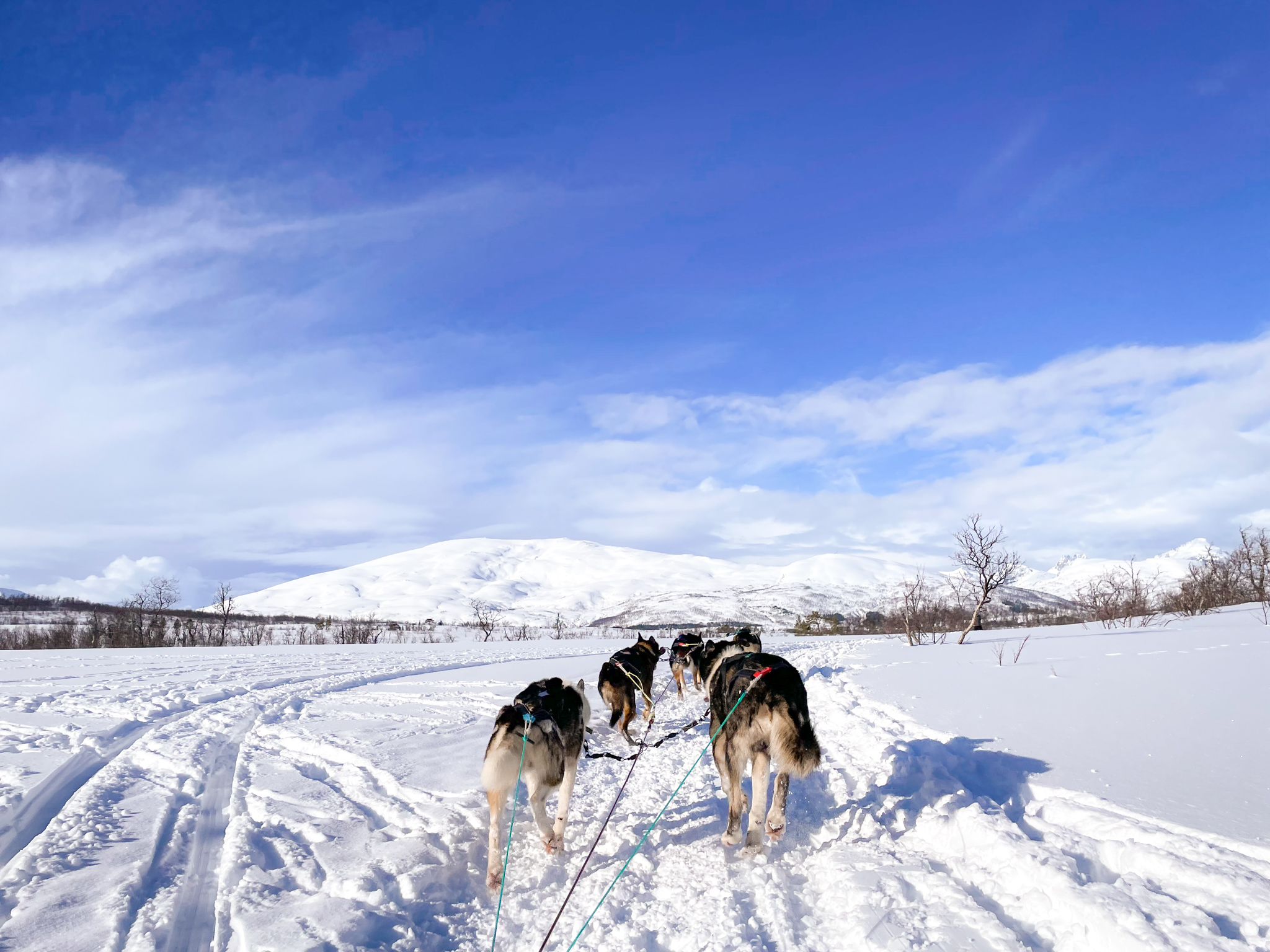 To see the Arctic landscape, you can go by car or the more fun way, is to jump on a sled and mush an energetic team of husky dogs. We were initially quite unsure about this activity, as we are not typically adrenaline-chasers. But, it became one of the most memorable things we did do in Tromso! If you are like us and filled with anxiety, don’t worry, you are suited up in a thick thermal suit, you receive some training and instructions, and it takes about 5-10 minutes to get the hang of driving the sled. You won’t be travelling at supersonic speed because it’s important to the welfare of the dogs not to do so, but it is an exhilarating experience nonetheless.