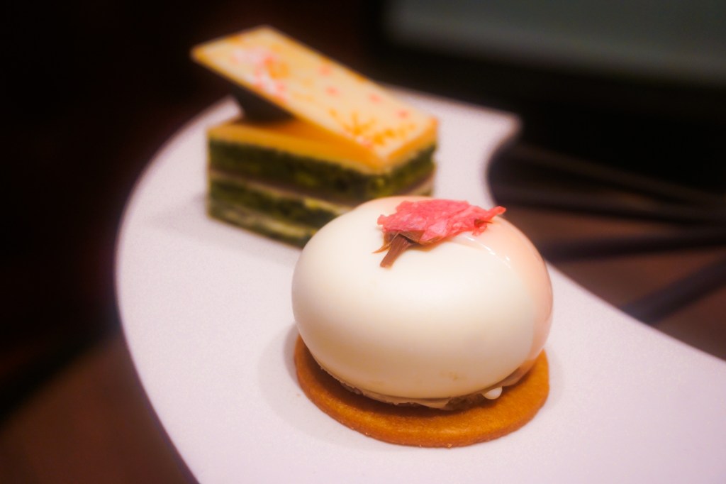 Short and sweet story: Over the years, we have stayed in many many hotels, and for the most part, they tend to blur into each other. Tokyo’s Hotel Gajeon, however, has to be one of the most memorable hotels we have ever visited. More frequented by locals than foreigners, it is one-part art gallery and antique museum, another part extravagant wedding venue, and a third part luxury hotel. It’s absolutely stunning – from the exquisitely landscaped Japanese gardens, to the corridors of opulent art work, even to the internal flowing river and waterfall, and what must be the craziest restrooms ever (it resembles a small village with a bridge!). Presented on a unique fan-shaped tiered tower, Hotel Gajeon’s cherry blossom high tea featured four savoury nibbles and seven sweet morsels. The desserts included sakura-flavoured mousse cake, cream roll cake and chocolate bites. There were also slices of red bean pound cake, green tea opera cake, and a mugwort scone. Hotel Gajeon’s high tea was perhaps the most understated (ie. simple) of the high teas we had in Tokyo, but it’s still worth a visit for the hotel itself.