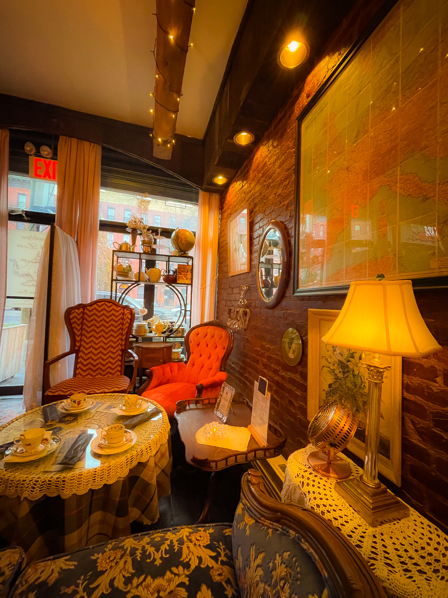 - ☑ The short and sweet story: Listening to the rain while nibbling on an English high tea in Brooklyn.