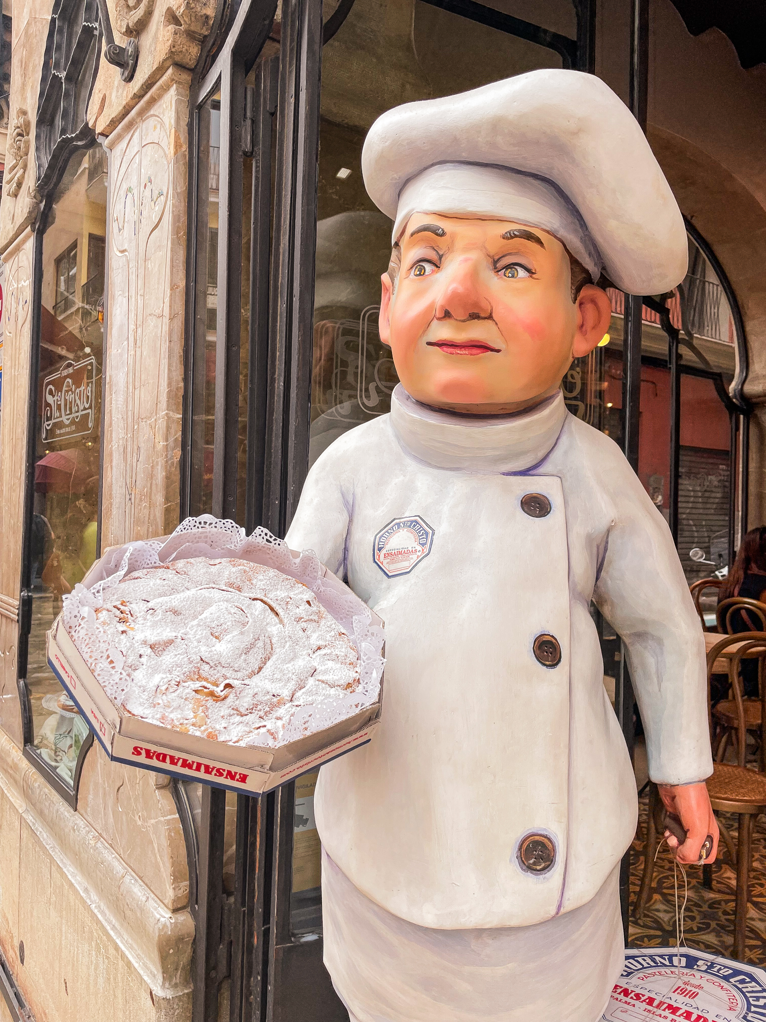- Horno Santo Cristo – come here for the Mallorcan “enseimada,” which is a swirly spiral pastry dusted with a snow shower of icing sugar, and filled with custard cream. Skip the rest.