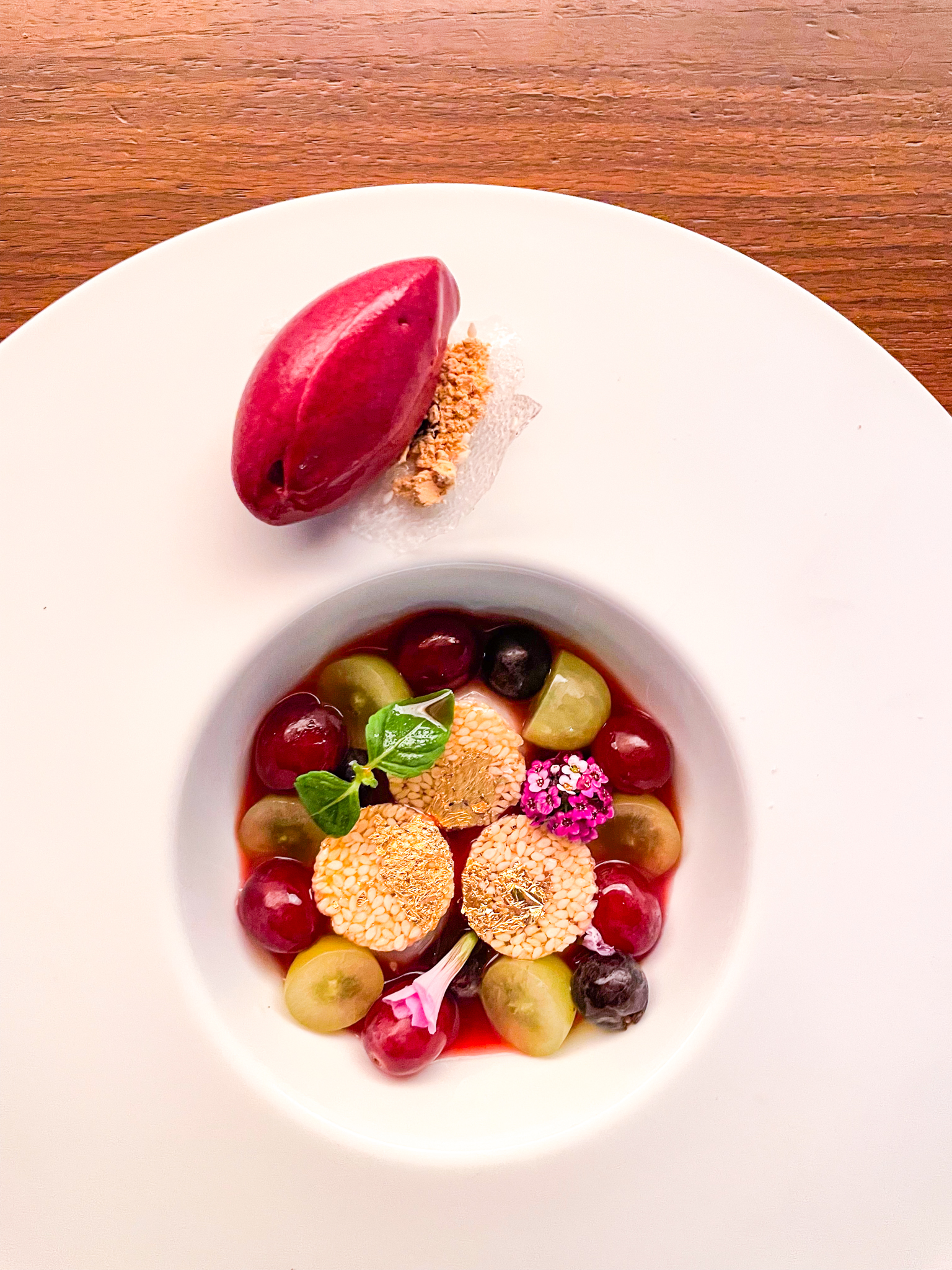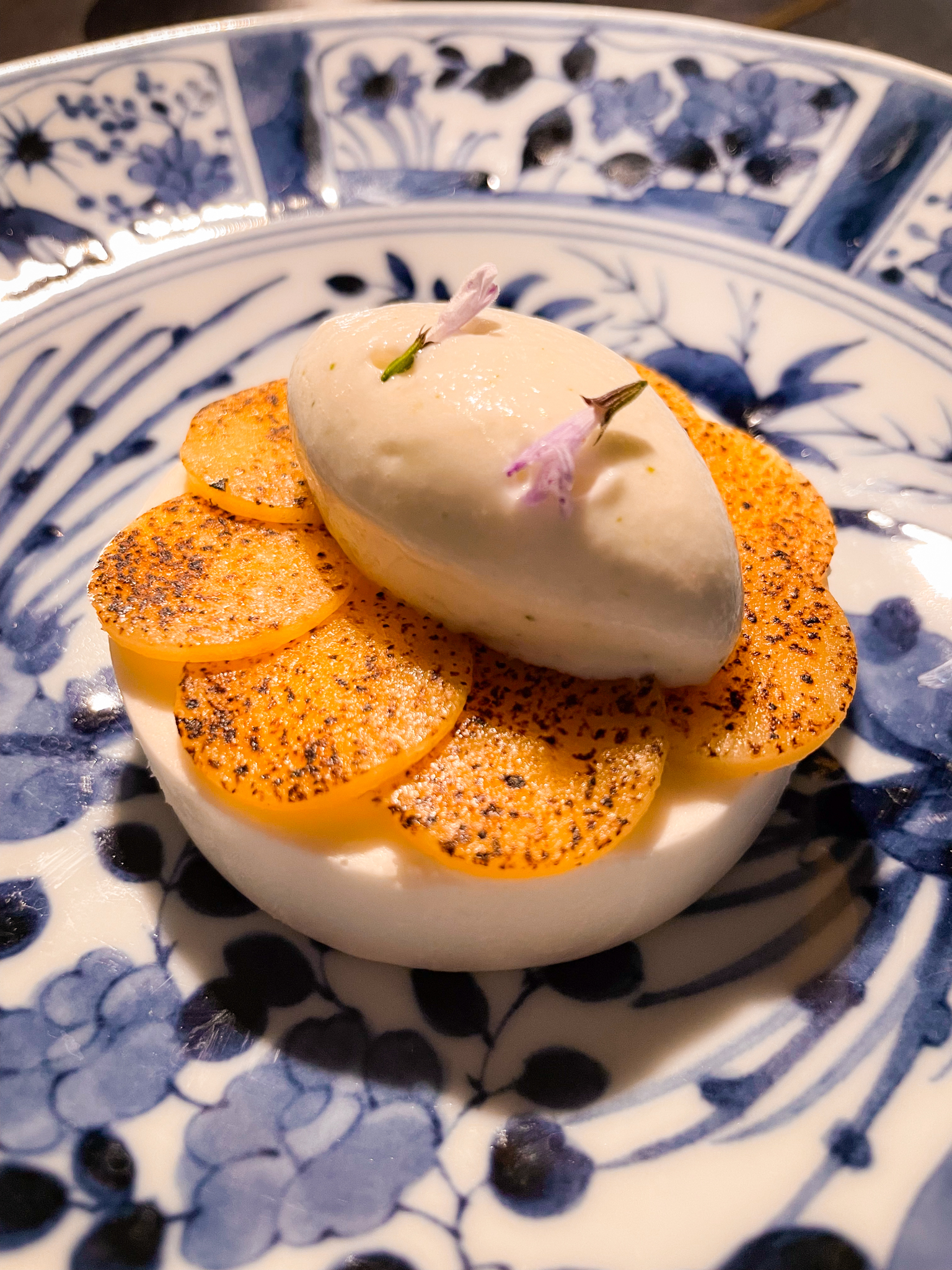 Short and sweet story: By contrast to Hutong and Juqi, Yingtao is a tasting menu restaurant. Whereas the aesthetic of most of NYC’s modern Korean Michelin restaurants errs on the minimalist side, Yingtao exudes a distinctively moodier vibe of luxurious dining. Its ten-course tasting menu is also heartier in substance compared to equivalent Korean counterparts, but had we not known beforehand that its specialty was supposed to be modern Chinese fine dining, we might have thought it was simply French, with a sprinkling of Chinese flavours. For example, never have we seen a Chinese restaurant serve up raw fish, or duck cooked like it’s wagyu…In any event, the highlight was the dessert epilogue, largely because this was where the potential of “modern Chinese” was more evident. Here, a crystalline shovel of sour-plum-flavoured ice deftly cleansed the palate to leave room for an exquisite creamy spoonful of Yingtao’s Niang Gao dessert. One of the bestttttt restaurant desserts that we have had in a long time…probably since the now sadly shuttered Joomak actually…