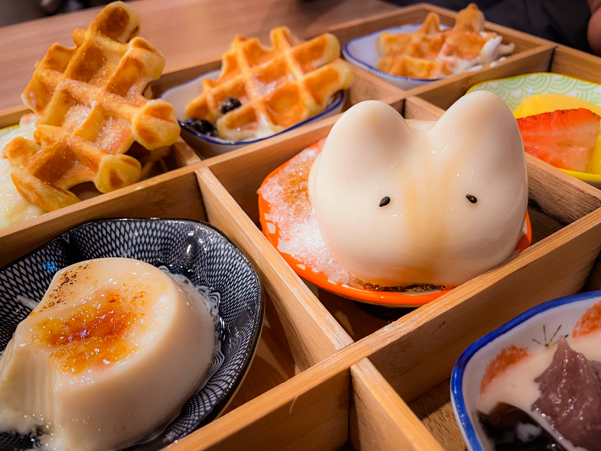Short and sweet story: Blink and you will miss it, that’s how we feel about Blackball’s semi-hidden Chinatown location. But don’t miss it, or you will have major regrets! Blackball has created a dreamy box of Chinese desserts that is absolutely perfect to share with a group of friends. A jiggly soybean cat-shaped pudding shakes up a picturesque assortment of modern and traditional Chinese desserts including croffles, silky tofu pudding, tangy citrus-y bingfen, red bean soup and egg custard pudding.