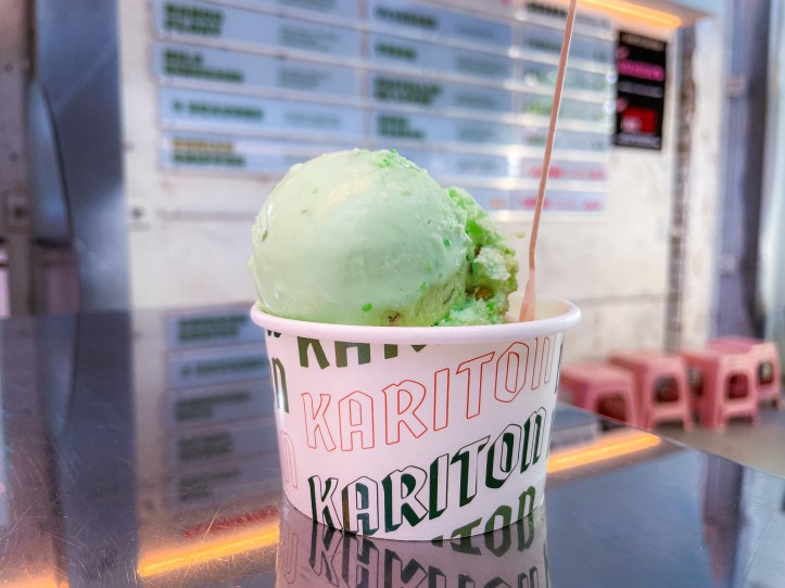 Short and sweet story: We previously featured Kariton in our guide to Melbourne’s best Asian ice cream shops. It truly stands out as an ice crea shop laser focused on Filipino dessert flavours. You won’t find an errant strawberry or tiramisu ice cream flavour here. Kariton’s Ube is extravagantly creamy, but as we find ube a bit too heavy to endure for more than a spoonful, we preferred Kariton’s range of sorbet more. The Buko Pandan sorbet is excellent, embedded with shredded coconut and pandan jelly, and as a double scoop experience, it is perfectly balanced with either the Guyabano (a refreshing soursop sorbet) or the Four Seasons (a sweet mix of guava, pineapple, mango and orange). By comparison, Kariton’s non-sorbet range are much creamier and much much sweeter, featuring flavours such as caramelized bana, milo milk, cheese, and dulce de leche that draw on distinctively Filipino desserts. Note that Kariton scoops particularly generously – aka slightly larger-than-average-sized scoop.