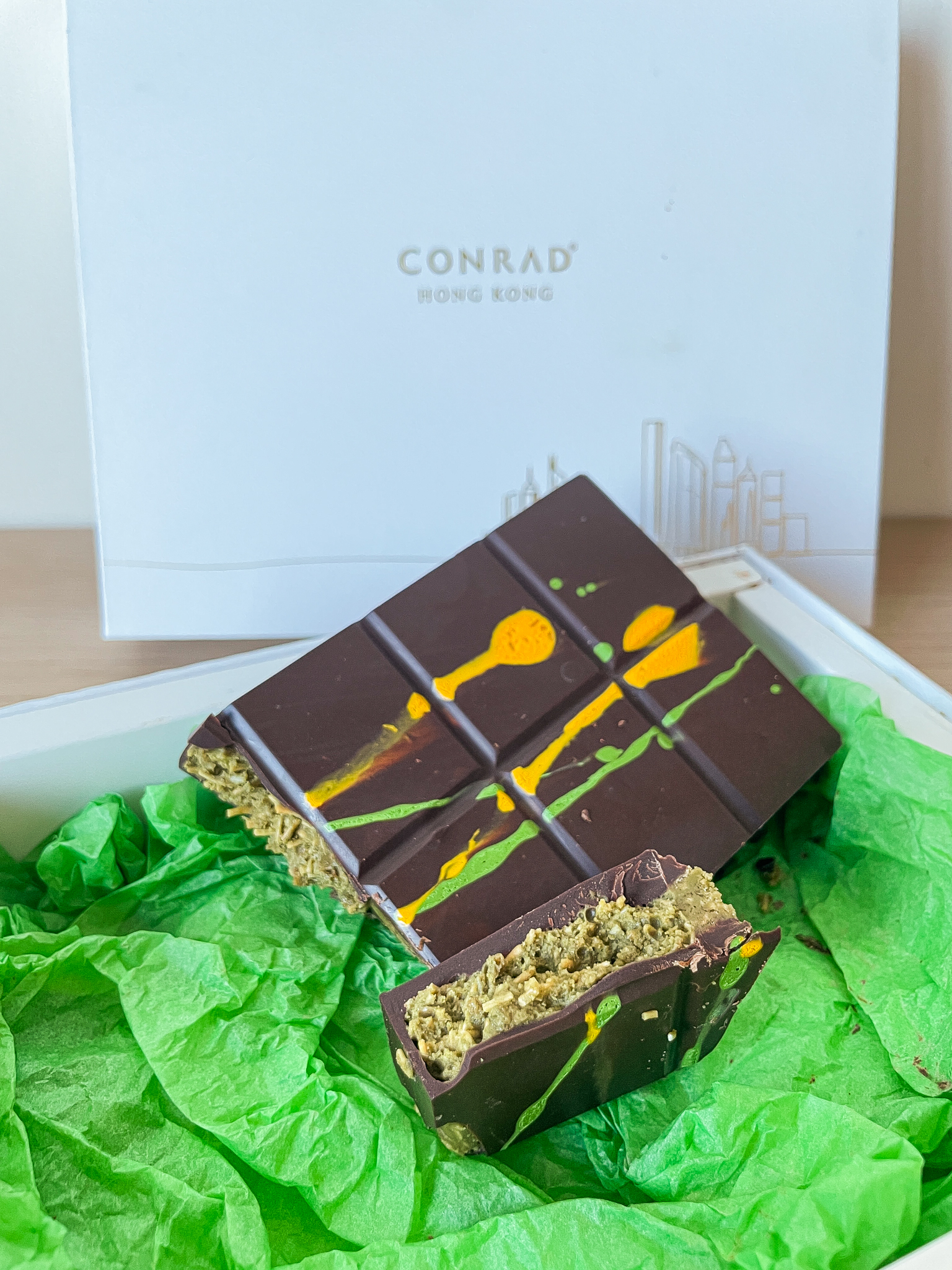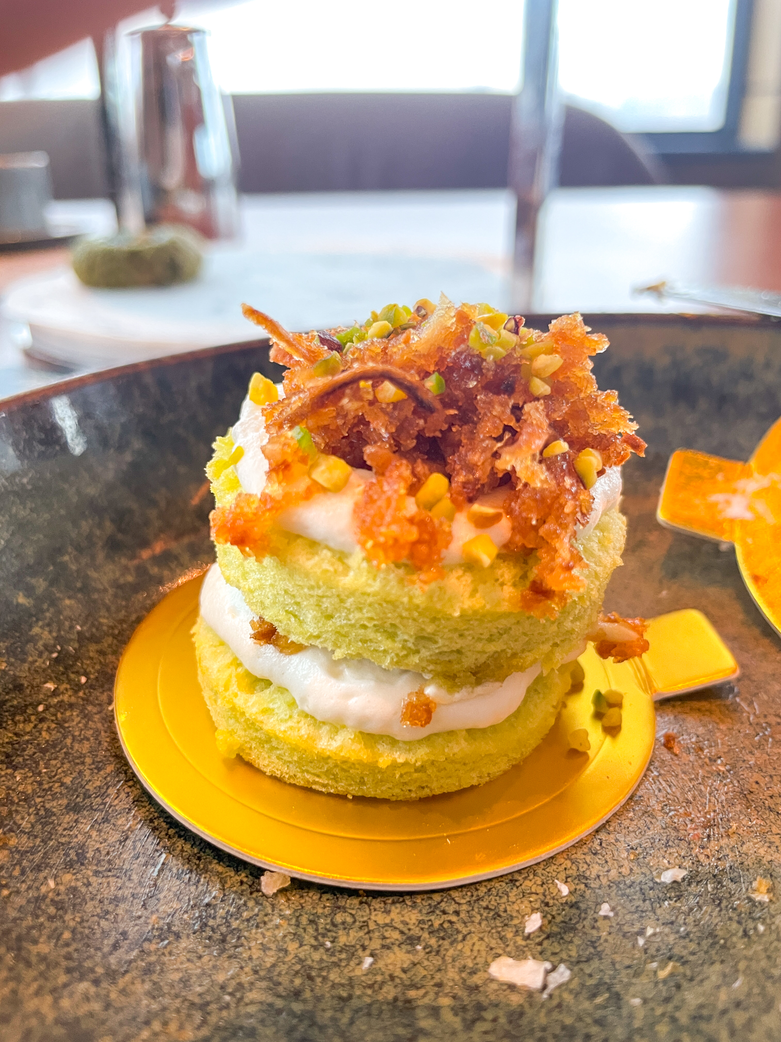 Short and sweet story: 2024 was the year that “Dubai Chocolate” became viral on the likes of TikTok and Instagram, especially in Europe and parts of the US. By contrast, in Australia, we only heard down-the-grapevine whispers of it. In Hong Kong, pistachio — rather than Dubai Chocolate itself — is more on-trend, mostly because the local palate does not err towards saccharine desserts. Over this summer at the Conrad Hotel, we spent a leisurely afternoon nibbling our way through a pistachio-themed afternoon tea. It started with savouries, such as a white chocolate and pistachio foie gras praline, and a pistachio mortadella mille-feuille. They were presented simultaneously on a large crystal platter as the desserts. The sweet offerings included pistachio mousse-cakes, sponge cakes, panna cotta and mini ice cream cones, all offset with fruity tones of apricot, cherry and strawberry. Of course, afternoon tea is not afternoon tea withut some proper scones, and on our visit, the Conrad even scooped out generous dollops of pistachio-infused clotted cream, alongside the usual strawberry jam and ordinary clotted cream. As an epilogue, the hotel gifted high tea participants with a large block of Dubai Chocolate. We are still not quite sure what we think about this diabetic-inducing, sticky concoction of chocolate, pistachio cream and crunchy knafeh filo pastry. Be forewarned that eating it does certainly require a thorough teeth-brushing session afterwards.
