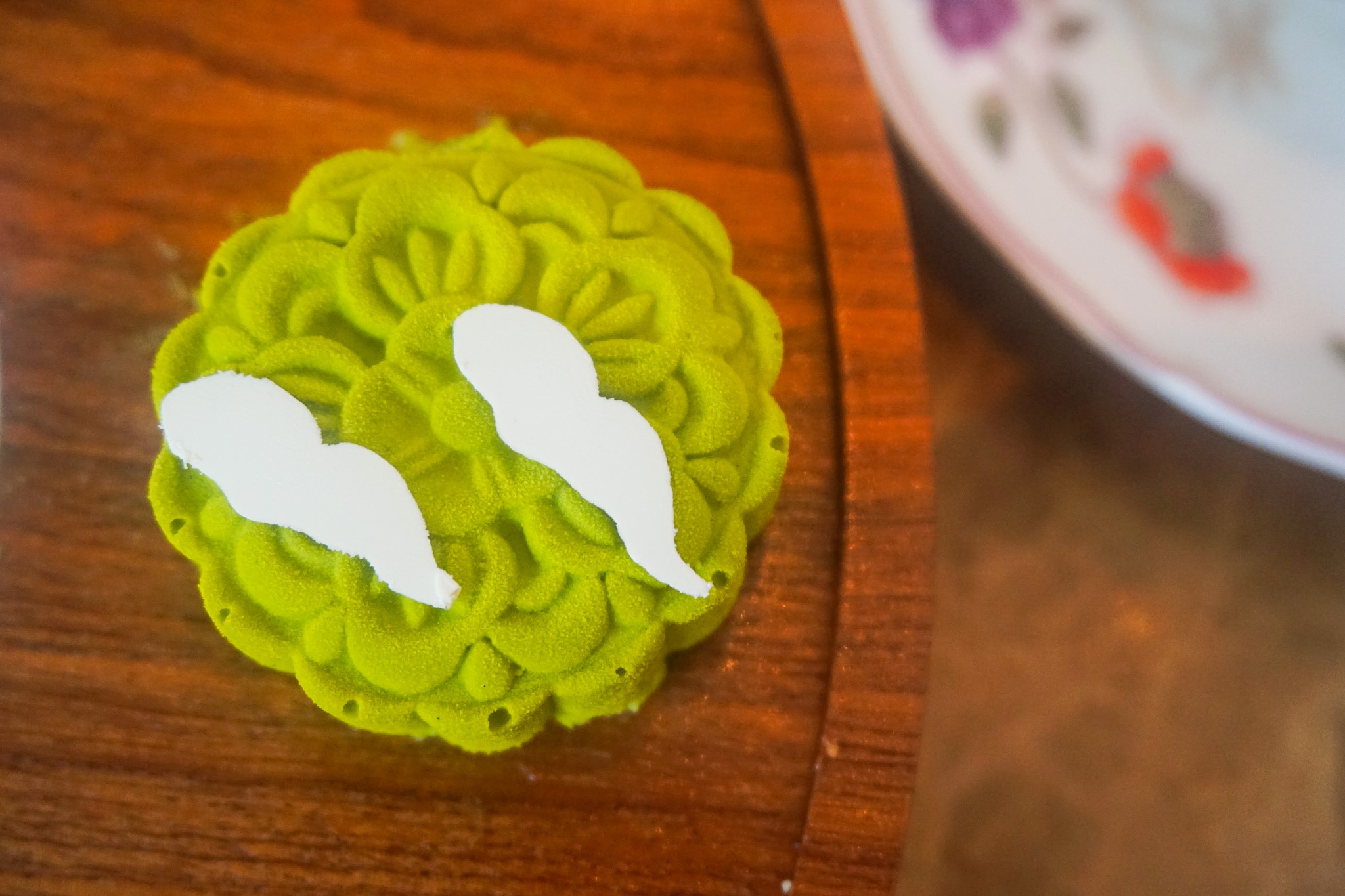 The highlight of the afternoon tea was of course, the mooncake dessert creations. These were done in a modern French patisserie style, with two being mousse creations, and the other a biscuit. First, a pearly mousse mooncake was embellished with a chocolate plaque of a rabbit leaping across a golden moon, and layered within with tropical flavours of coconut and pineapple. A second mooncake creation saw a green-hued one stamped with intricate patterns and infused with matcha and mochi. The third mooncake – labelled “Moonlit Harmony” – was the least aesthetically interesting of the three mooncake creations, yet it turned out to be our favourite. Sculpted from a shortbread-like cookie, strawberry jam and tea mousse laid underneath its chocolate medallion centrepiece. Scones were also served at the afternoon tea, and were appropriately plump and consequently cloaked with clotted cream and strawberry jam.